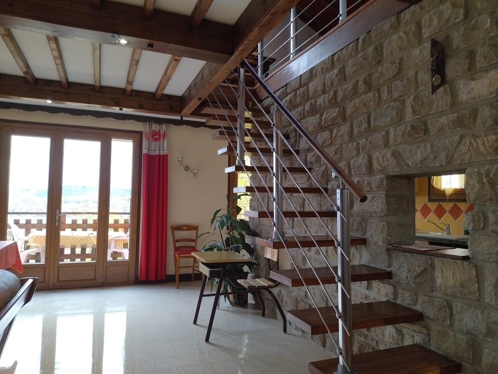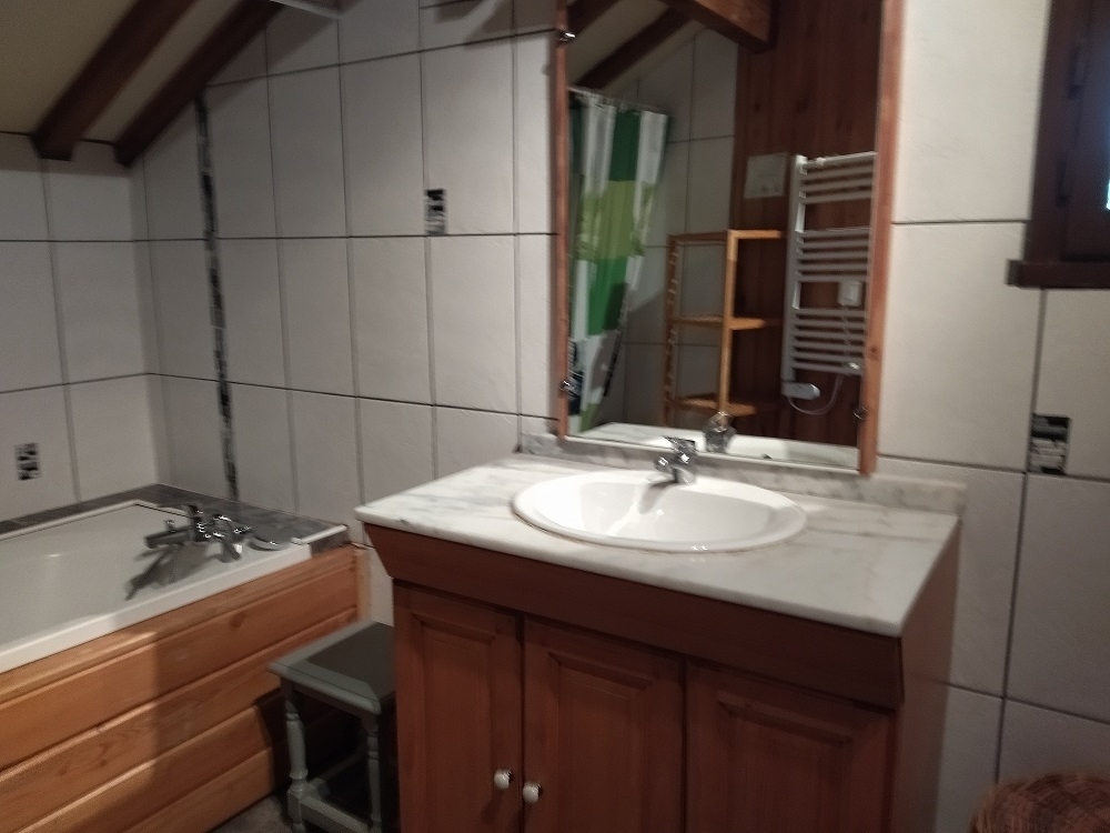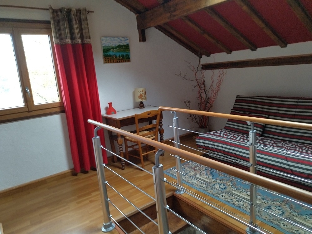 2ième niveau • Une chambre avec lit de 160 / 1 traversin, 1 couverture, un couvre-lit • Une chambre avec 2 lits jumeaux de 80 ( pouvant se rapprocher ), 1 traversin, 1 coussin,1 couverture et 1 couette par lit • Une chambre avec 2 lits superposés de 90, 1 oreiller, 1 couverture, 1 couette par lit • Salle-de-bain avec baignoire et lavabo WC séparé • Mézanine avec 1 convertible